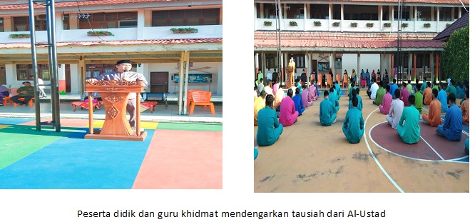Setelah pembacaan ayat suci Al-Qur’an dilanjutkan tausiah oleh Al- Ustad Bapak Nazriel Abdul Muluk. Al-Ustad terlebih dahulu membuka dengan menjelaskan pengertian Isra’ Mi’raj yaitu suatu peristiwa yang amat istimewa dan maha agung yang tidak pernah dialami oleh manusia-manusia sebelumnya. Peristiwa ini terjadi pada tanggal 27 Rajab. Rasulullah SAW menempuh perjalan secepat kilat lalu naik kelangit hingga ke sidratul muntaha. Setelah itu Al-Ustad melanjutkan menjelaskan sejarah singkat Isra’ Mi’raj secara jelas. Seluruh peserta didik dan guru begitu khidmat mendengarkan tausiah dari Al-Ustad. Penutup dari tausiah Al-Ustad menyimpulkan bahwa fakta dibalik sejarah isra’ Mi’raj dalam islam yaitu Nabi Muhammad SAW naik ke atas langit dengan ruh dan badannya, Pemahaman kewajiban Sholat, Nabi Muhammad melihat Allah SWT dengan mata hatinya, Allah SWT tidak butuh tempat dan Nabi Muhammad bertemu Para Nabi dan Rasul.